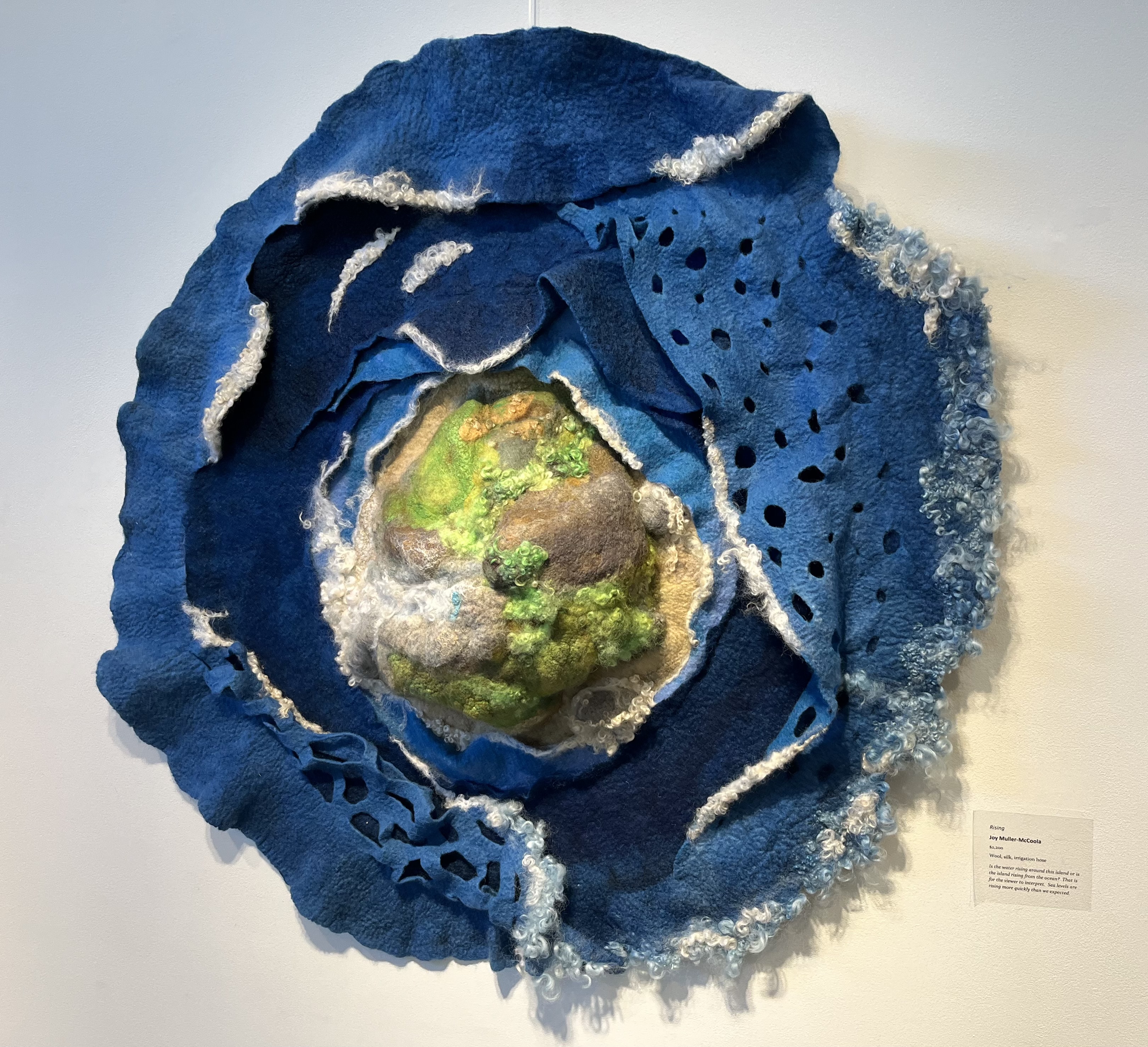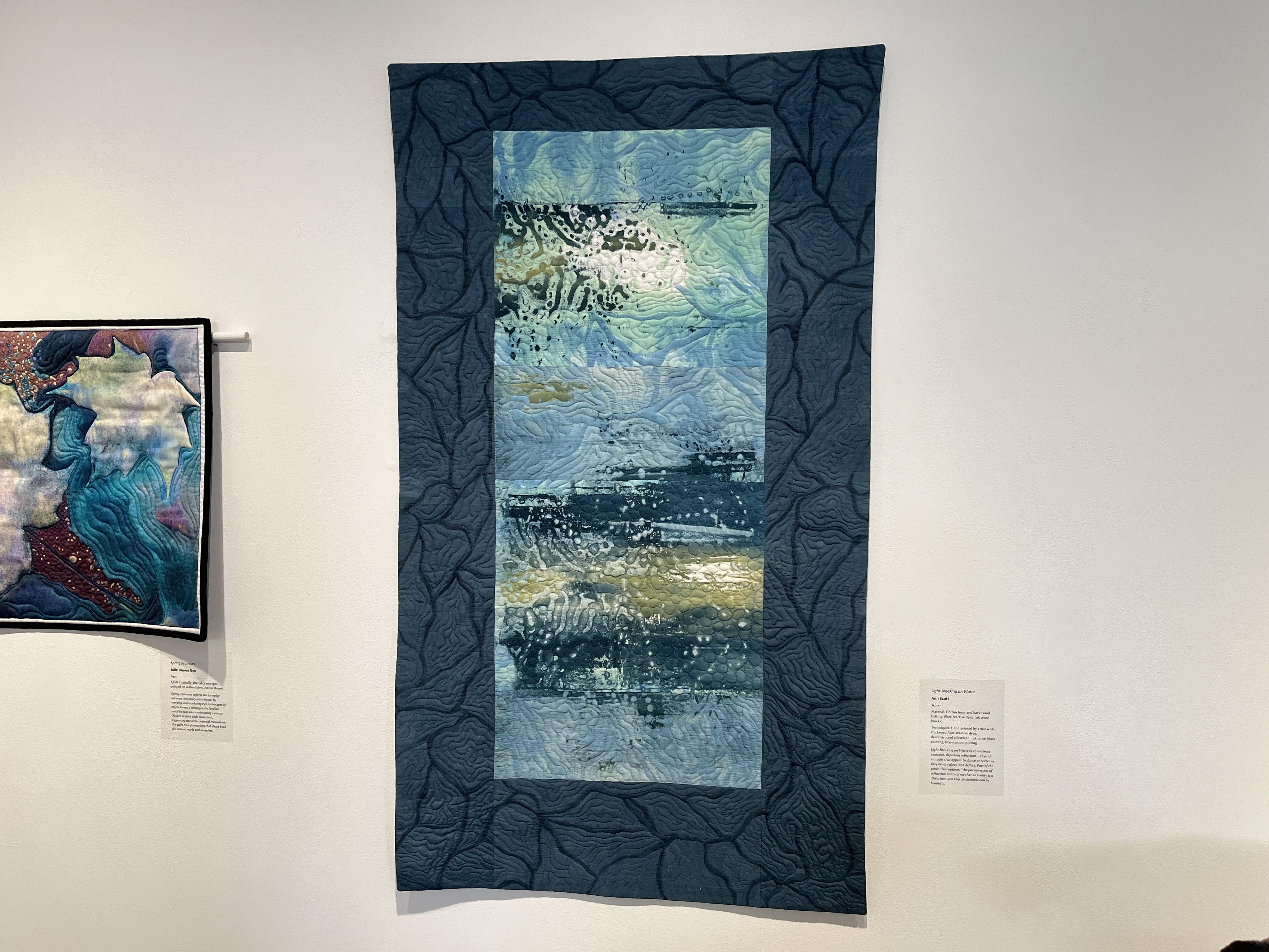 After that, you can see the lovely “Light Breaking on Water,” by Ann Scott. And Sandra Mayo’s “The Way We Touch the World,” with the gloved hands, was intriguing.
