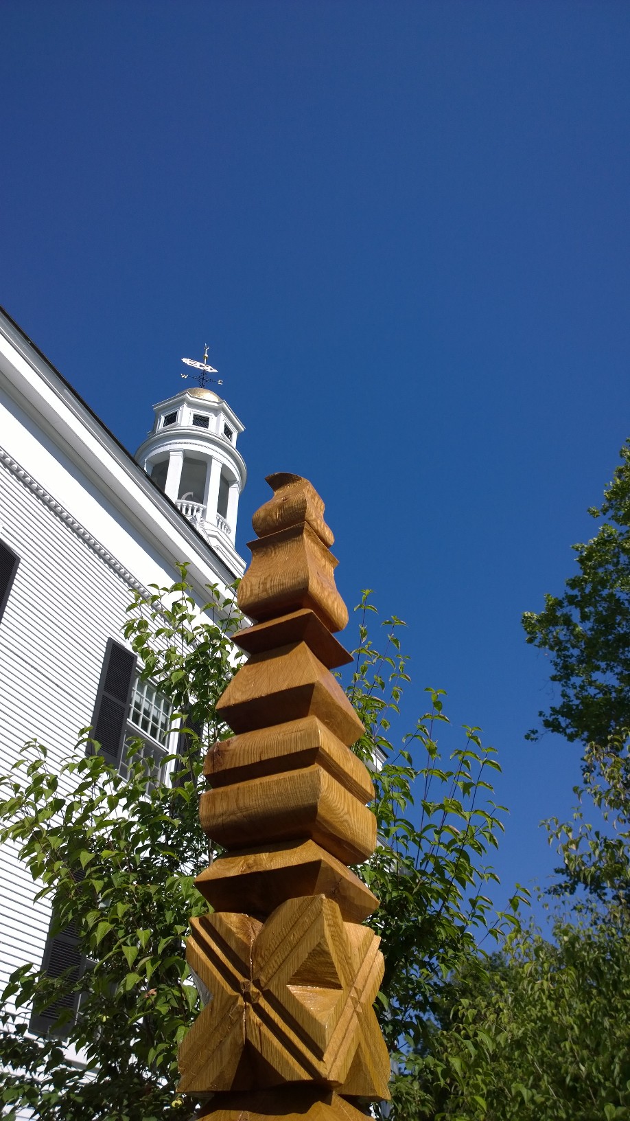 Today at church we dedicated a wooden pole that was carved by the minister of our sister church in Transylvania when he visited Massachusetts last year.