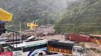 Photo: Times of India. Himachal rains: Chandigarh-Manali highway blocked at multiple places.