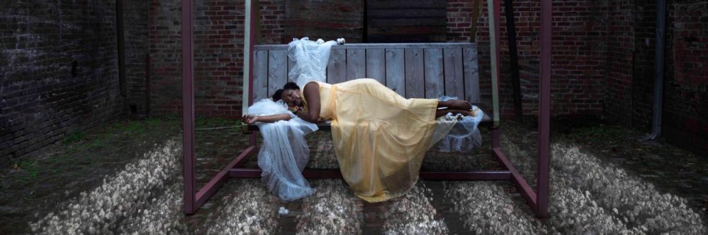“Olya Haydamaka is a Kyiv-based illustrator whose work is influenced by traditional clothing. As a response to the Russian invasion, Haydamaka has created multiple illustrations of women in traditional clothing acting as protectors and healers of Ukraine. In ‘Чернігів. Сильне коріння. (Chernihiv. Strong Roots.)’ (2022), Haydamka responds to the particularly brutal attacks on Chernihiv in northern Ukraine. The woman wears a traditional embroidered vyshyvanka with exaggerated embroidered sleeves, along with a traditional red coral namysto (necklace). The iconic St. Catherine’s Church levitates in the air, with deep red roots dangling under it. This piece not only highlights Ukrainian folk clothing but also elevates the clothes to be otherworldly and ‘healing.’ …