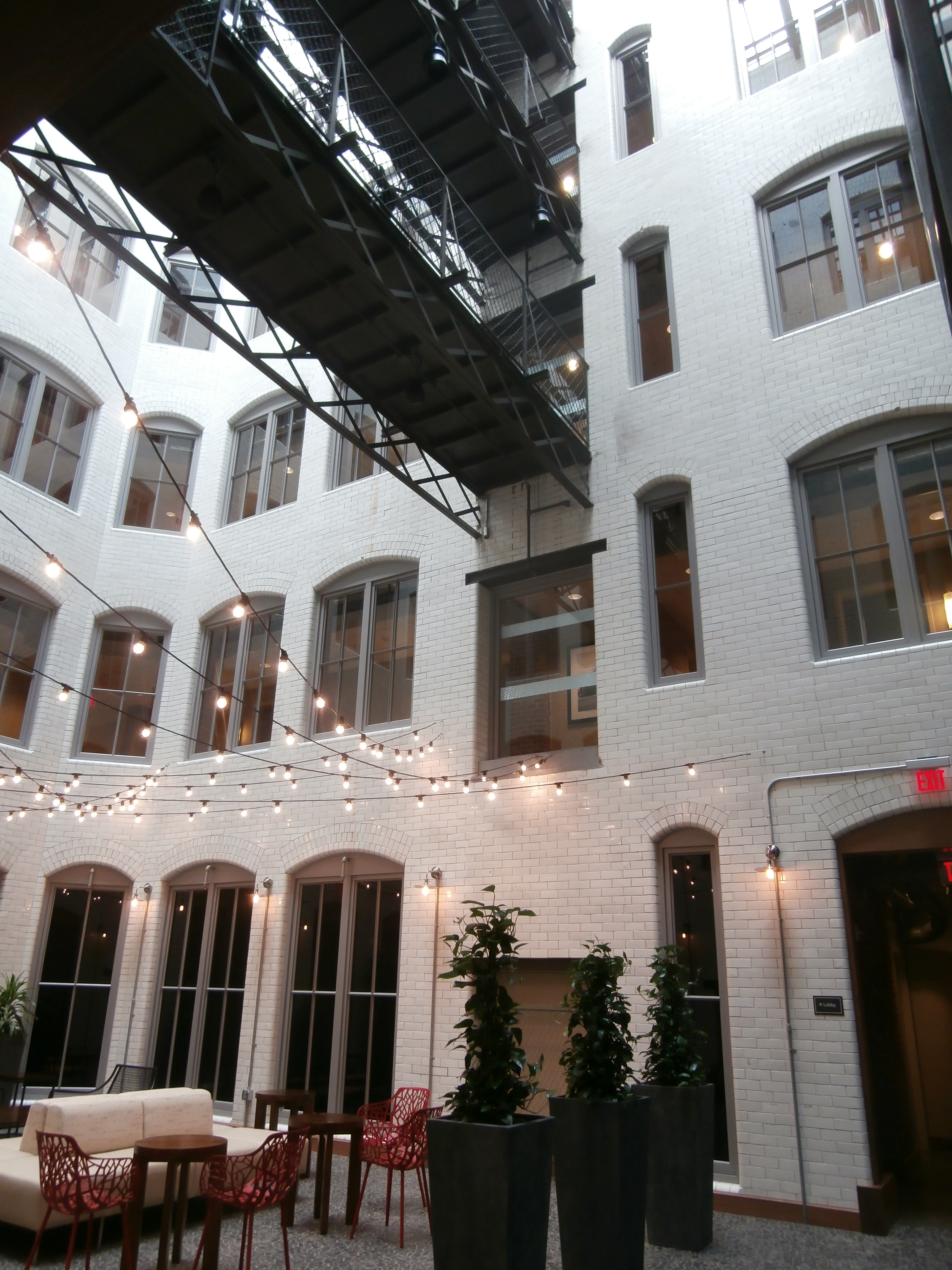 I also wanted to include some more lovely clouds, the old Massachusetts state house (dwarfed by modern buildings like Virginia Lee Burton‘s Little House), a warehouse interior repurposed as an elegant atrium for a Fort Point hotel, another one of those “Play Me, I’m Yours” street pianos, the Barking Crab restaurant sign, and a sleeping bee.  “When a bee lies sleepin’ …” (Do you know the Harold Arlen song from the 1954 musical House of Flowers?)
